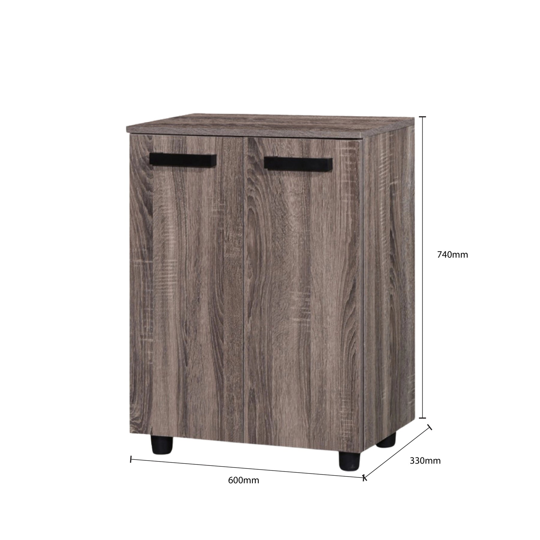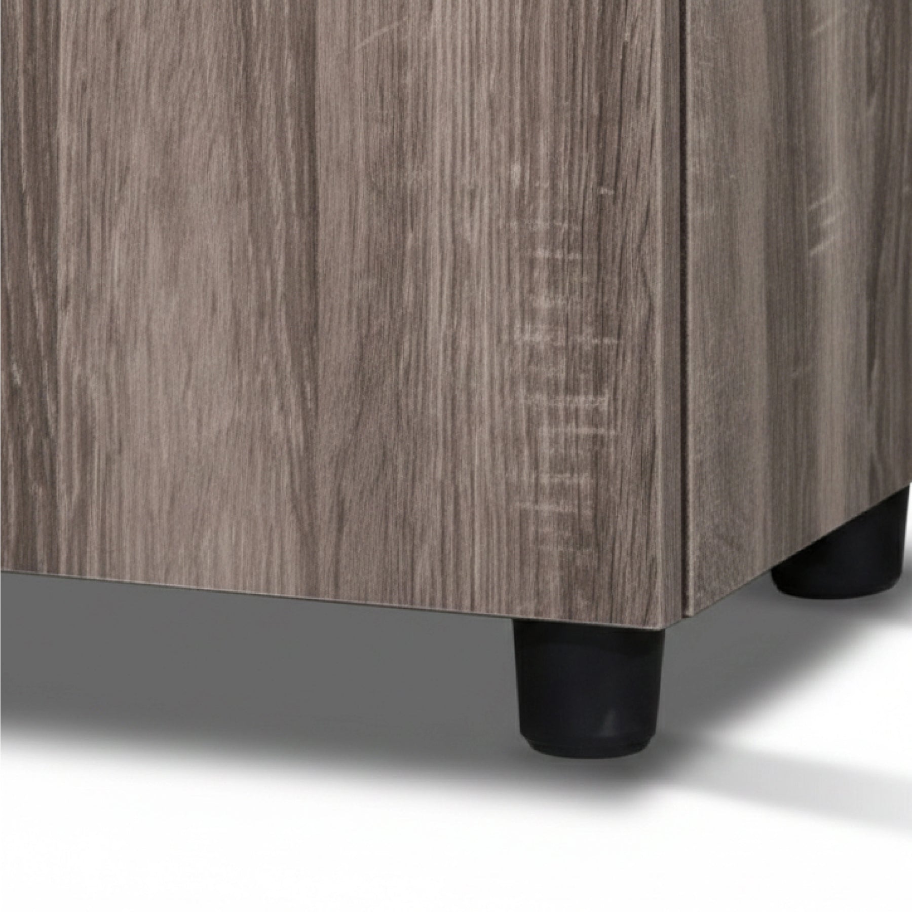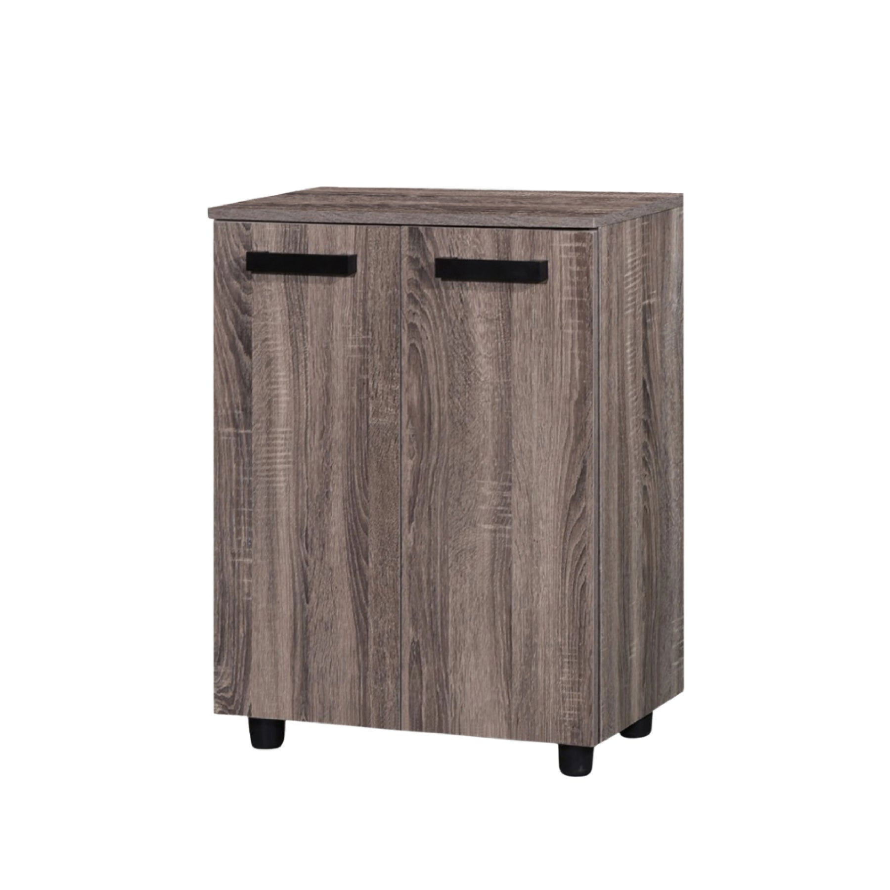 Engineered for practical utility, the cabinet features a dual-door system that opens to reveal four spacious storage tiers. This multi-level design allows for the systematic arrangement of a significant footwear collection within a space-saving footprint. For a clean and modern look, the doors are equipped with minimalist black horizontal handles that offer an ergonomic grip and a sharp visual contrast against the walnut finish. Built from high-quality Amino Laminate, the Wexford Shoe Cabinet is designed for daily durability. The unit is supported by rounded black safety legs, which provide excellent stability while protecting your floors.